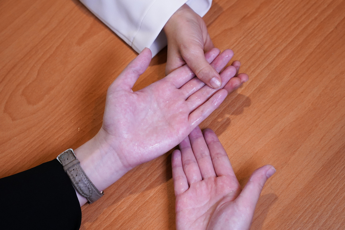 一名30歲劉小姐從青春期開始受到原發性多汗症的影響,曾在他院治療腳汗症,去年4月再度因手汗嚴重,造成她害怕與人握手、易弄濕文件、打電腦常常在鍵盤上留下手汗,影響生活,因此至台北慈濟醫院尋求胸腔外科協助。