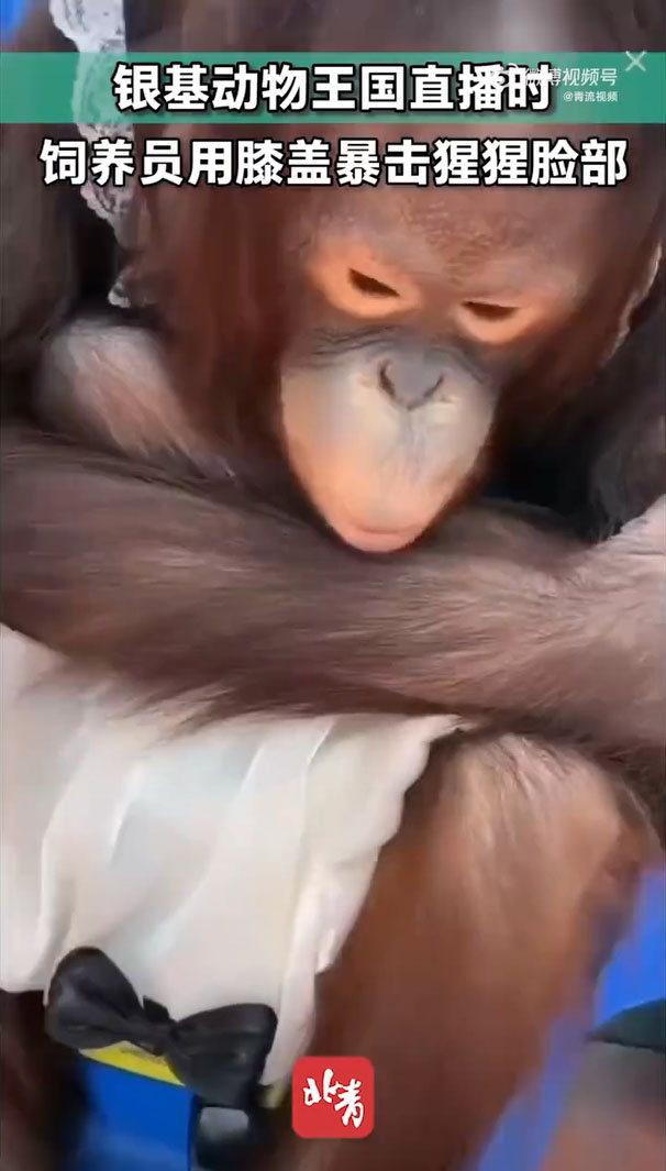 你以為所有動物園的飼養員,都對動物特別有愛心和耐心嗎?那可不一定!前日(11)中國大陸河南省一間動物園進行網路直播,就在直播結束瞬間,飼養員猛力的用膝蓋爆擊小猩猩的臉部,牠當場哀號逃開,讓網友看了相當火大,要求動物園給個交待。