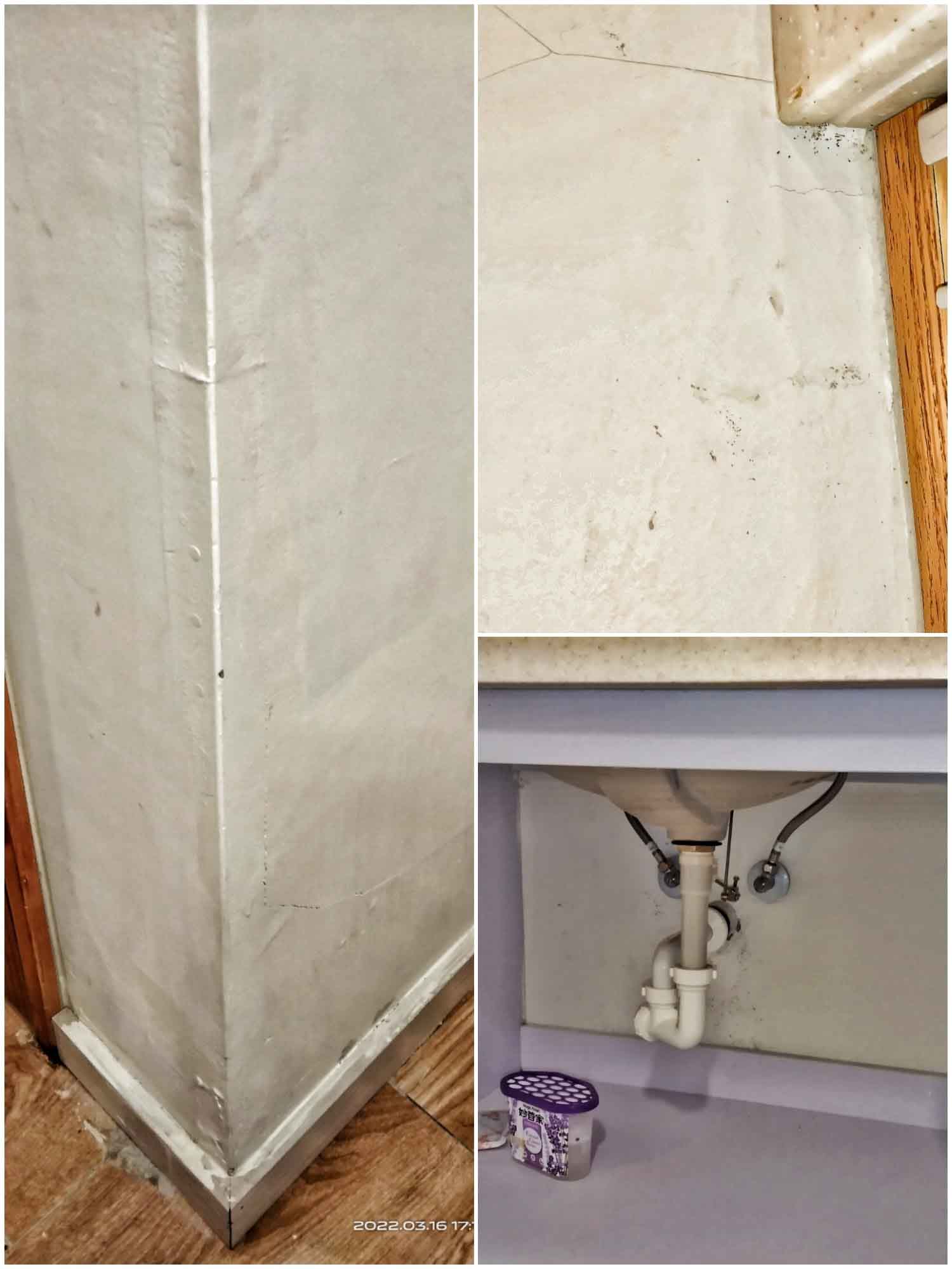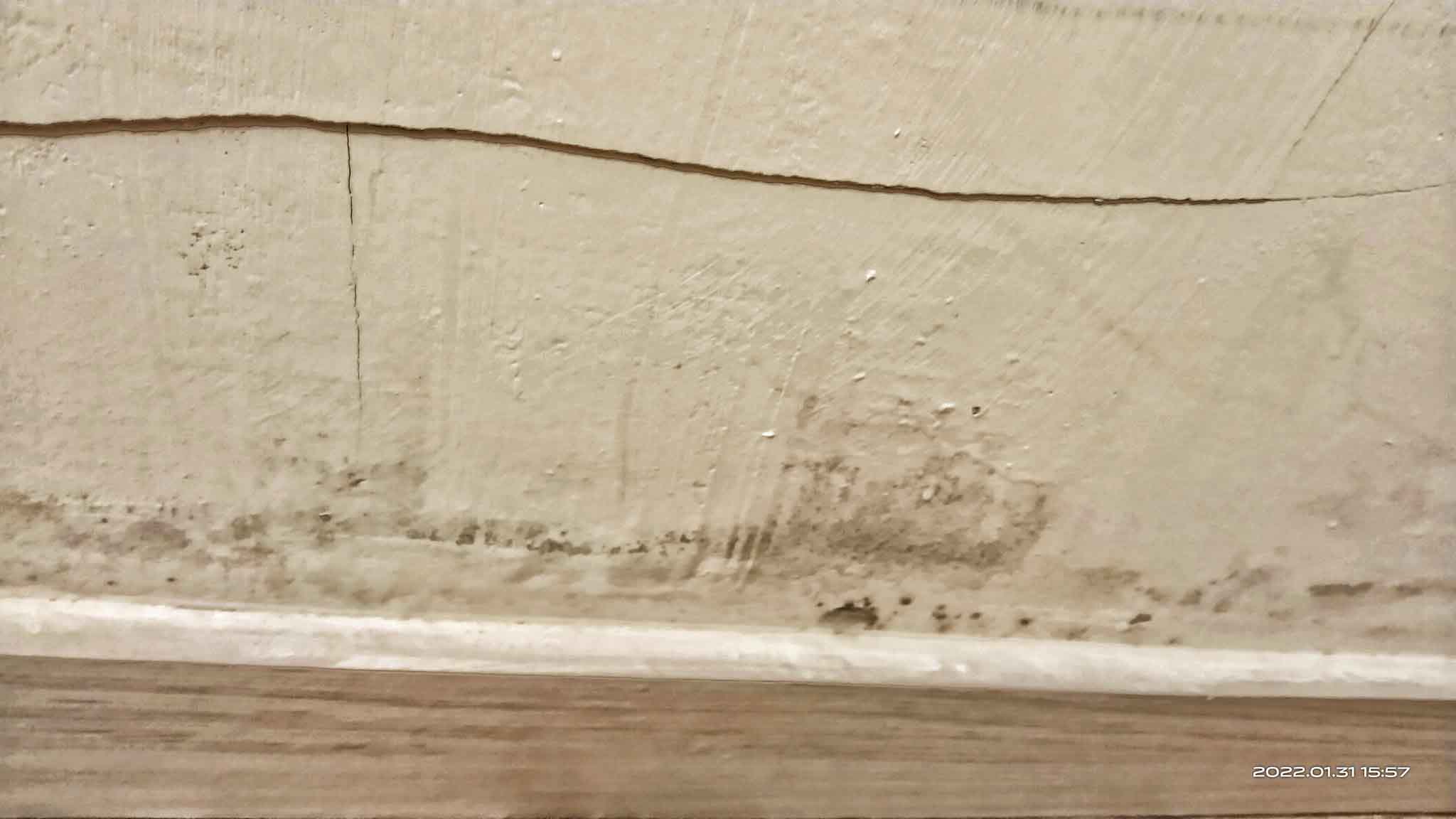原PO表示,2月16日就已經告知物業管理人員有一面牆壁發霉、木板掀起,2月22日為此特地找里長來家裡看,且之前報修櫥櫃發霉,報修完竟又再次發霉了,里長當場也有聞到「濃濃的黴(霉)味」。她指控「但物管總幹事卻沒聞到,投訴大平台沒用」。