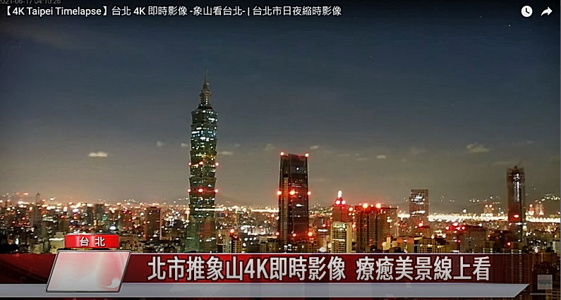 從象山俯瞰台北市,將藍天白雲、暖黃夕陽到百萬夜景,透過4k高畫質攝影機盡收眼底,觀光傳播局推出「象山看台北-4K即時影像」,民眾不用出門,就可以觀賞到令人屏息的療癒美景。