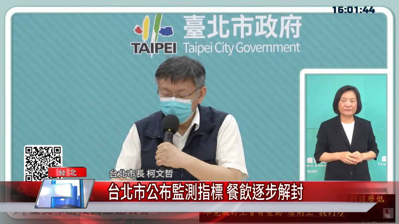 台北市長柯文哲表示,若控制在低度感染情況下,願意慢慢地解封,至於餐廳也不能一下就放鬆。確診數字降到這麼低的時候,統計上不免會有變動,在逐步放寬之下,若有情況失控,就會立刻收回來管制,以科學統計的概念,用大數字法則來處理。