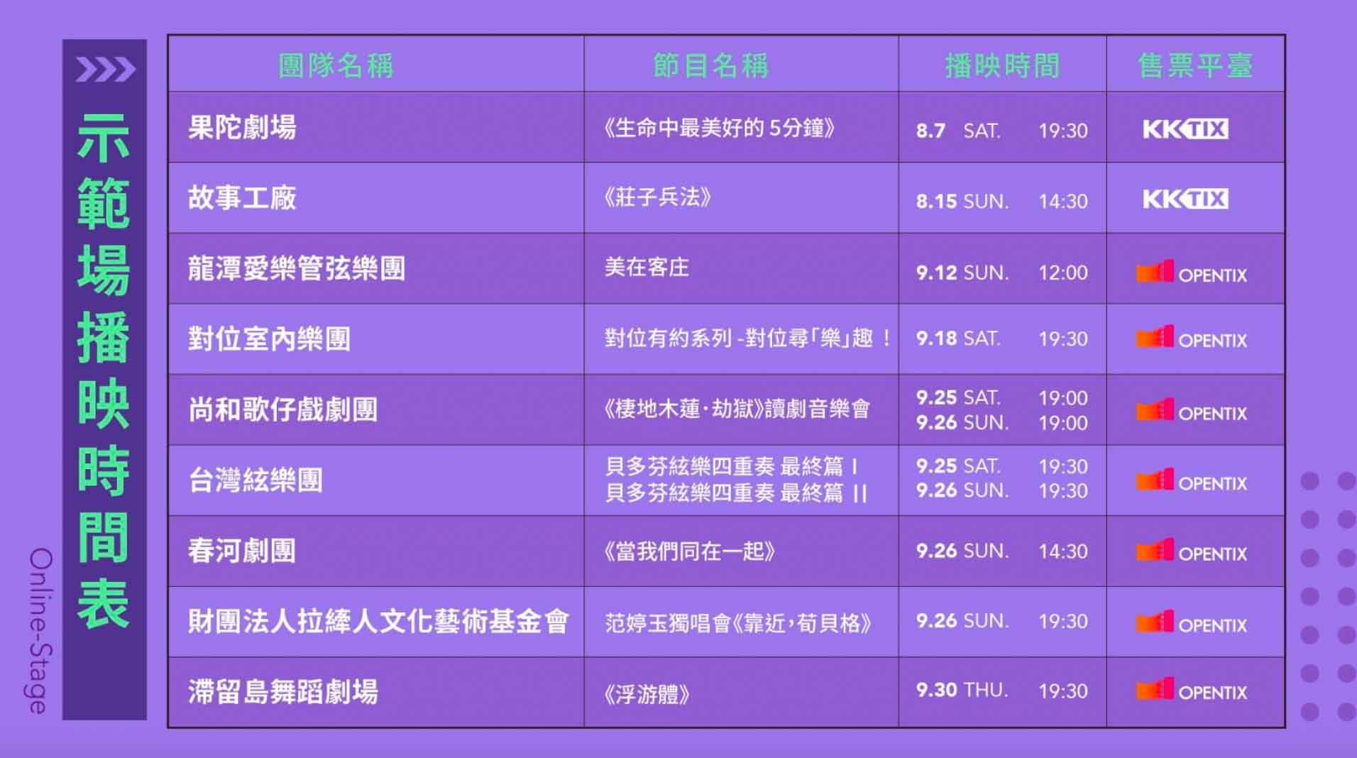 2.新舊作品不拘,播放將從 8月初開始至9月30日。