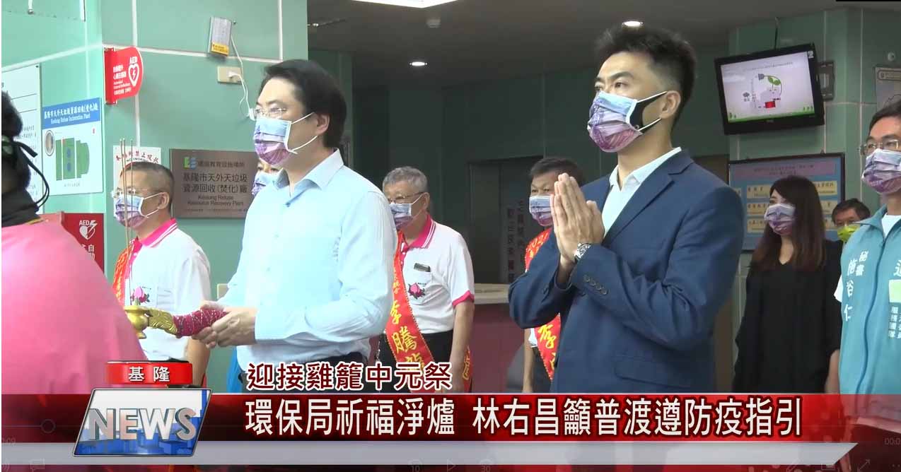 在法師主持下,基隆市長林右昌手持清香與基隆市議會副議長林沛祥等人虔誠祭拜,雞籠中元祭即將到來,基隆市環保局特別舉辦祈福淨爐活動,包括紙錢集中暫置站,焚化爐金爐及紙錢載運車等,希望鼓勵民眾能以環保方式來祭拜好兄弟,基隆市長林右昌也呼籲社區居民、公司行號在舉辦聯合普渡時能遵守相關防疫指引,避免群聚。