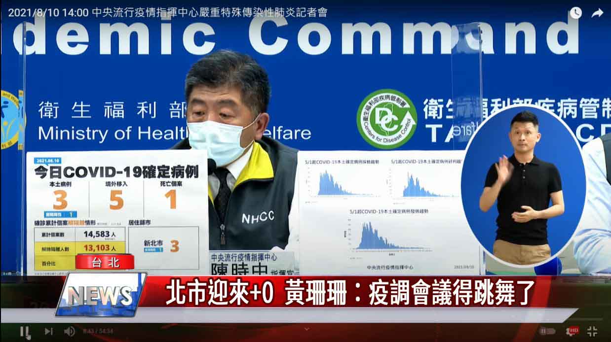 五月疫情三級警戒後,台北市經歷萬華阿公店、北農、環南市場等疫情大爆發,經過兩個多月的辛苦抗疫,10號終於迎來+0,副市長黃珊珊在臉書興奮表示,看來下午疫調會議得跳舞了。黃珊珊表示,從疫情高峰到清零,大約歷經一個月,達標速度不能說快或慢,市府每天都是戰戰兢兢,確實匡列每個個案,進行研究與撲滅。他也曾答應同仁們在疫情+0時,跳舞給大家欣賞以慶祝這次的喜悅,並且感謝市民配合防疫,終於迎來成績,不少民眾也在臉書留言,感謝市府團隊,也希望每天都能看到黃珊珊跳舞。