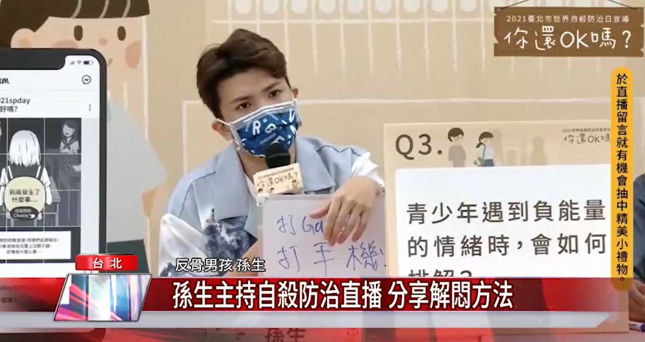 依據衛生福利部統計資料顯示,109年國人死因於自殺居第11位,臺大公衛學院社會科學行為研究所所長張書森教授表示,約有6成自殺企圖民眾在採取自殺行為前曾留下訊息、有接受關懷服務的自殺企圖民眾的自殺死亡率會下降63.5%,因此為提升周遭親友覺察與協助有自殺想法的青少年,北市府自殺防治中心日前舉辦直播,由網紅反骨男孩孫生主持,鼓勵青少年適時排解煩悶。