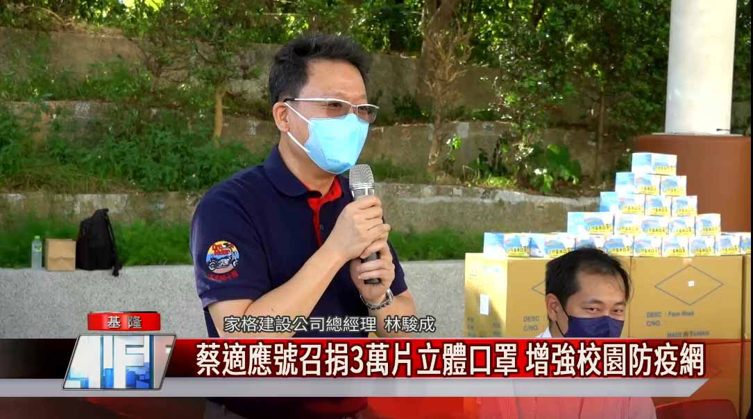 基隆立委蔡適應與市議員陳宜,號召基隆子弟創業開設的醫用立體口罩工廠興安衞材公司,並聯合家格建設、寶幸國際公司一起來捐贈3萬片3D立體口罩給基隆市國中小學弱勢孩童,增加校園防護力。教育處代表科長與深美國小校長陳建文都表示非常感謝。
