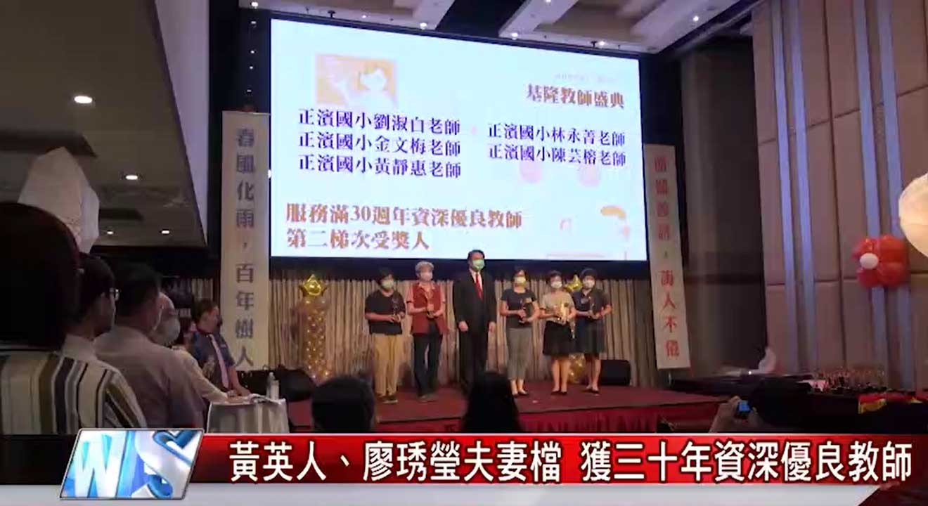 在受獎老師中,其中服務滿三十年的資深優良教師-暖暖國小的黃英人及廖琇瑩是夫妻檔,在教學與行政系統的協作上盡心力,營造共好的校園。