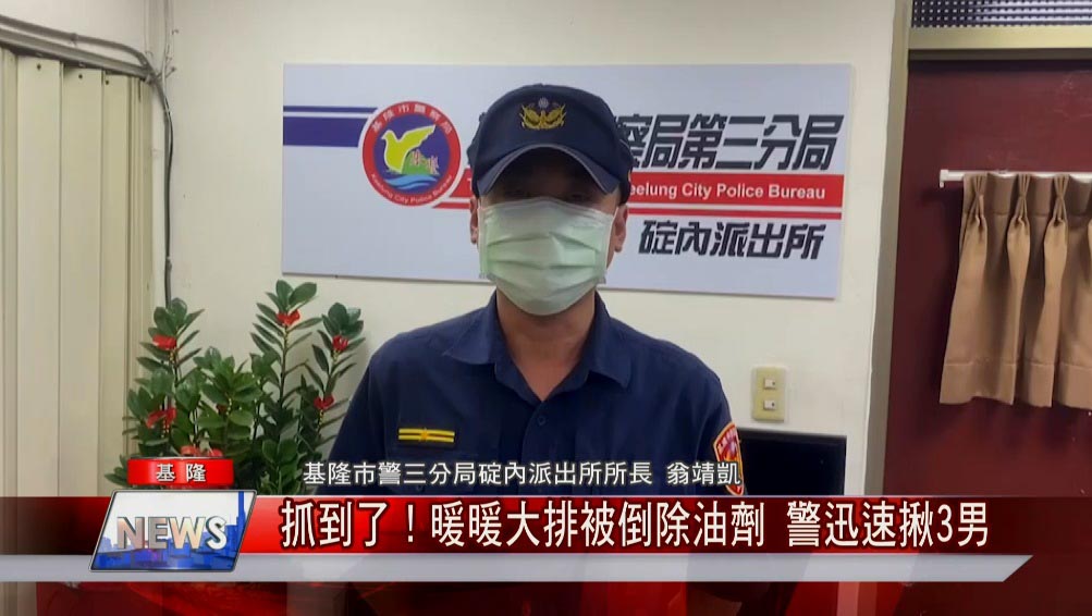 水溝殘留大量的白色液體,暖暖區大排懷疑遭人濫倒。警察局三分局接獲通報之後,調閱監視器掌握3名涉案男子通知到案說明。