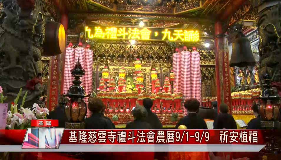 基隆慈雲寺舉辦禮斗法會,大殿案桌上數百個斗桶整齊排列都是信徒點的斗燈。慈雲寺一年一度的祈安禮斗法會,農曆9月1日起一連9天舉行舉辦祈安禮斗誦經禮懺法會,祈求風調雨順、國泰民安,並為眾善信消災植福。