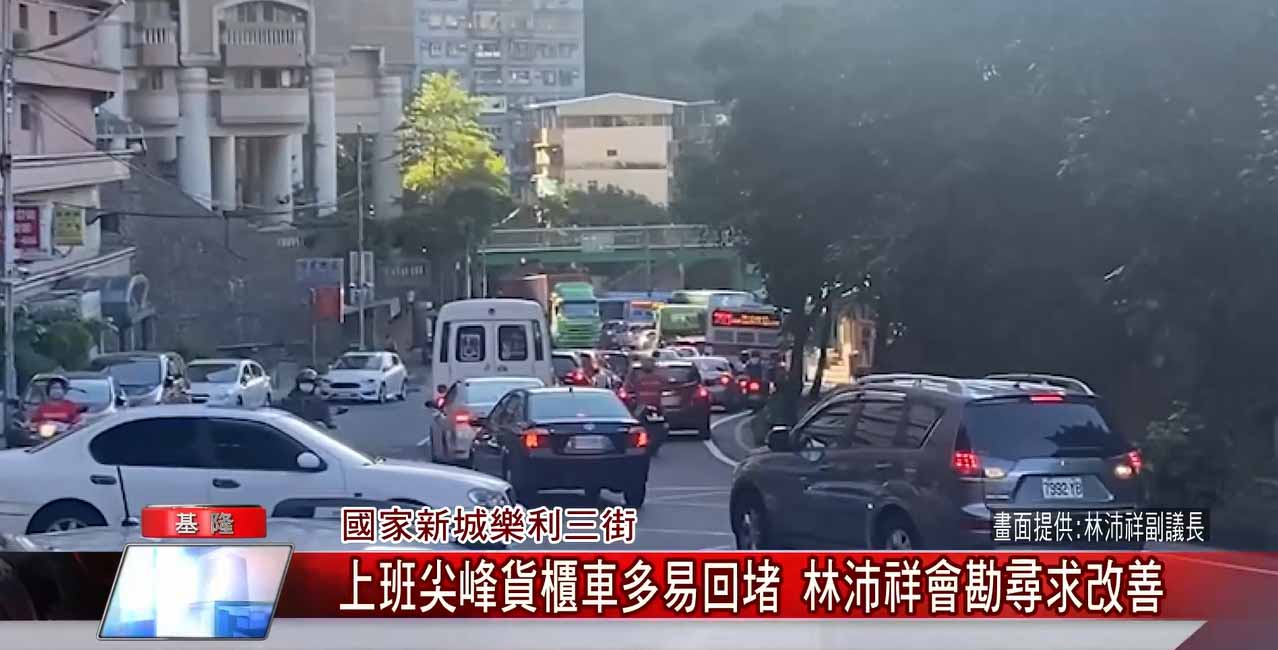 基隆安樂區國家新城社區,由於每天上班尖峰時間都有許多貨櫃車同時出車,導致樂利三街回堵十分嚴重,基隆市議會副議長林沛祥接獲當地里長和民眾反應後,直接到現場實測,發現光是從國家新城牌樓到樂利三街和麥金路口就需要開上15到20分鐘左右。