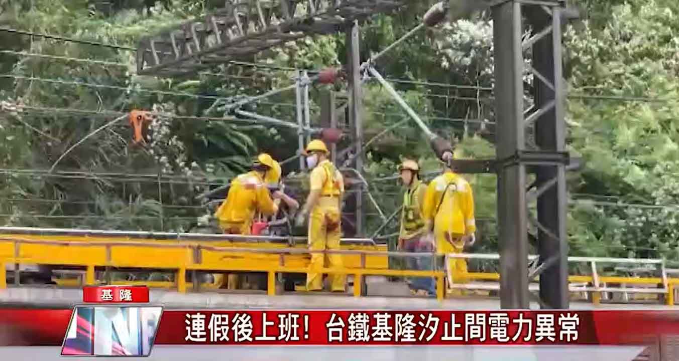 連假後上班第一天上午七點多,台鐵七堵至汐止間電車線電力可能被強風吹落或異物侵襲,導致電力異常。今天上午部分區間只能單線運行,台鐵人員趕忙搶修,下午1點40分完成修復 。