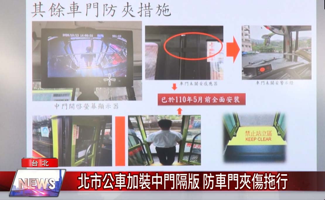 日前有公車乘客將頭手穿越公車中門旁欄杆刷卡,正好碰上車門開啟慘遭夾傷,為了杜絕類似情況再發生,台北市公運處針對3000輛低地板車型進行改善,在中門兩側加裝隔板,防止乘客伸手時不小心被車門夾到,預計明年3月底完成。