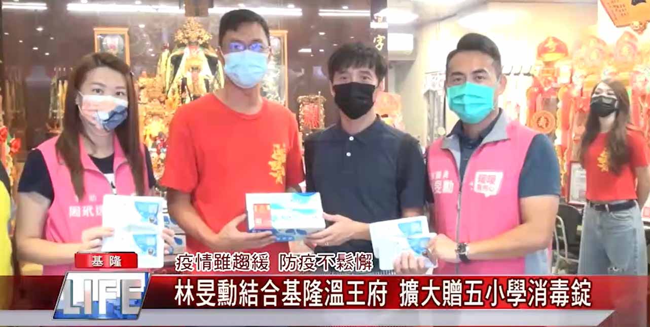 受贈前,五所國小校長和主任在市議員林旻勳帶領下,虔誠上香感謝基隆溫王府神明庇佑和加持致贈這一批消毒錠,也非常感謝市議員林旻勳的協助,每一所學校也都回贈感謝狀給基隆溫王府,表達由衷的感激。