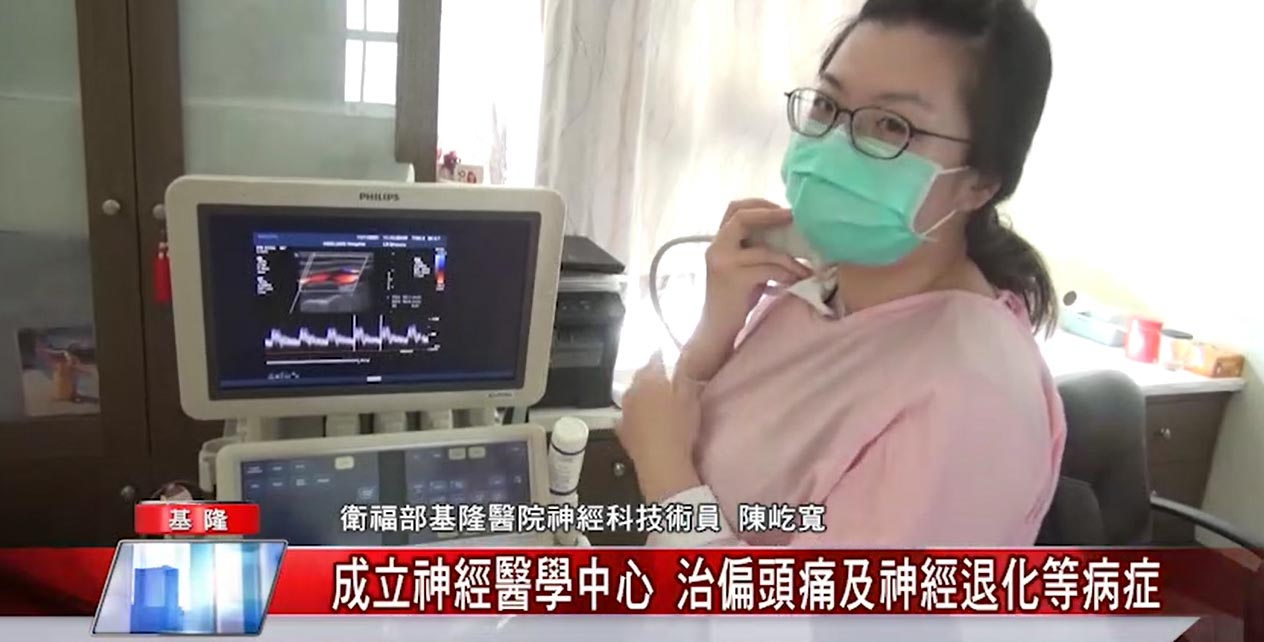 衛福部基隆醫院慶祝成立124週年特地成立「神經醫學中心」,由專業神經科醫師也是副院長陳韋達主持,並從台北延攬專業醫師前來坐鎮診療,提供市民朋友更好的醫療服務,包括偏頭痛、中風以及帕金森氏症和失智症等神經退化病症。技術員示範用專業機器了解脖子上血管血液的流動情況,讓神經科專業醫師判斷病人是否有病症。