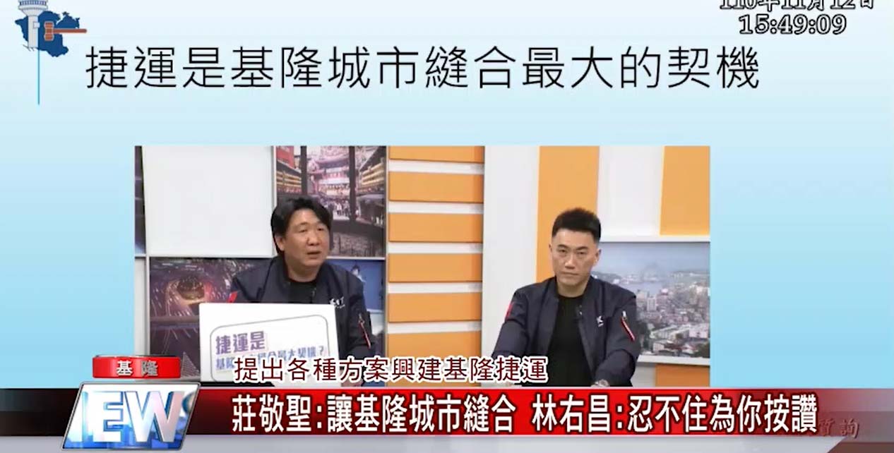 基隆捷運到底會不會興建的問題吵得沸沸揚揚,基隆市議員莊敬聖認為,基隆捷運一定要透過各種溝通和規劃克服困難興建,不但可以讓基隆的城市縫合,也可以帶動基隆市港未來的發展,莊敬聖更要市長林右昌記住,不管未來高飛到台北市長或是交通部長,都不要忘了自己是基隆人這個身分!