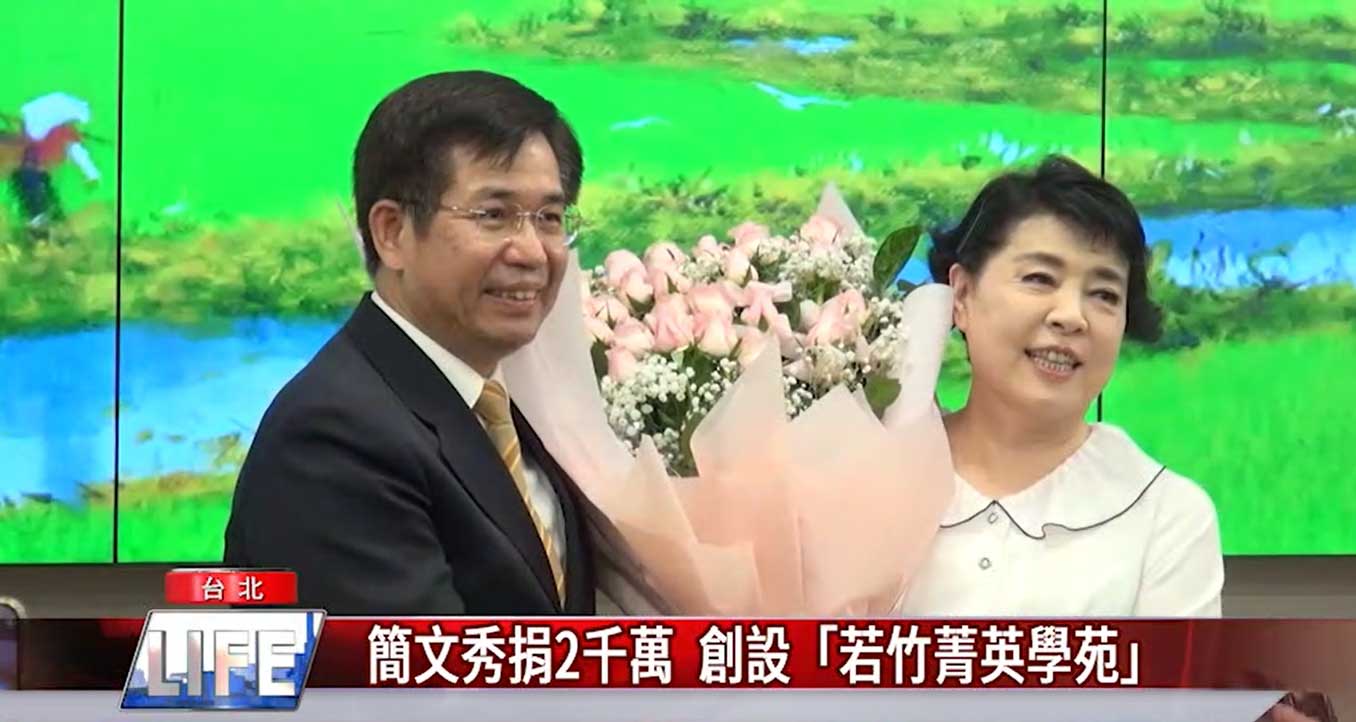 國際知名聲樂家簡文秀,與夫婿億光集團董事長葉寅夫,以及教育部長潘文忠、立委蘇巧慧、國北教大校長陳慶和等人,一同為「若竹菁英學苑」揭牌,為了感謝母校栽培,簡文秀捐款2000萬元給國北教大創設「若竹菁英學苑」,培育藝術設計、文化創意等領域人才。