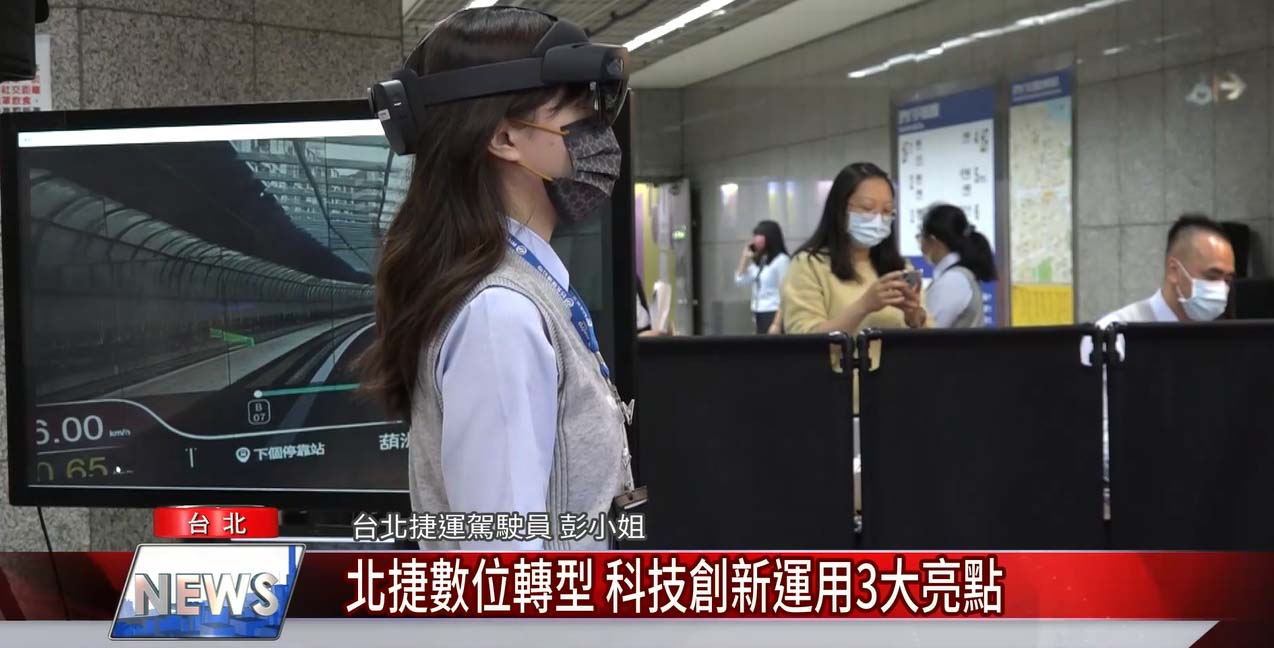 台北捷運駕駛員戴著MR眼鏡,操作遙控盤,練習啟動列車,這是北捷與工研院打造的MR智慧眼鏡及仿真駕駛面板,將智慧眼鏡中的虛擬情境疊合至駕駛面板,操作人員就能反覆練習啟動列車、加減速、精準停靠站等基本駕駛技能,藉由身歷其境的體驗,強化人員應變能力及專業技巧。