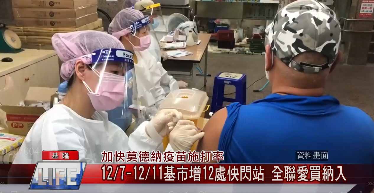 為了配合中央加速推動施打莫德納疫苗,基隆市長林右昌宣布從12月7日起至12月11日,除了原有35個預約醫療院所,基隆市將新增12處快閃站,提供莫德納疫苗即到即打服務。