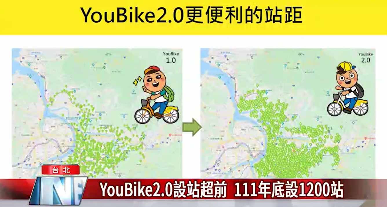 找來「學姐」黃瀞瑩協助拍攝宣傳影片,YouBike2.0因為站點不用拉電,設站條件門檻較低,台北市交通局運輸管理科科長廖苑伶表示,YouBike2.0 目前已設置800站,明年年底將達1,200站,平均150~200公尺就有一站可供借還。明年並開始計劃撤站撤去YouBike1.0,預計明年年底就能以YouBike2.0全程營運,有效吸引民眾使用。