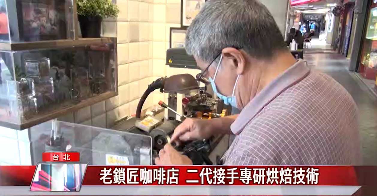 熟練的打磨著鑰匙,不過仔細一看旁邊卻都是悠閒品嘗咖啡的客人,這家位在萬華區的咖啡店,老鎖匠因為愛喝咖啡,16年前開了這間小店,一邊打鎖一邊賣咖啡,第二代接手後,承襲鎖匠對好咖啡的堅持,不僅拜師學藝考取歐洲咖啡精品協會烘豆師資格,更在杯測師與烘豆師比賽中頻頻獲獎。