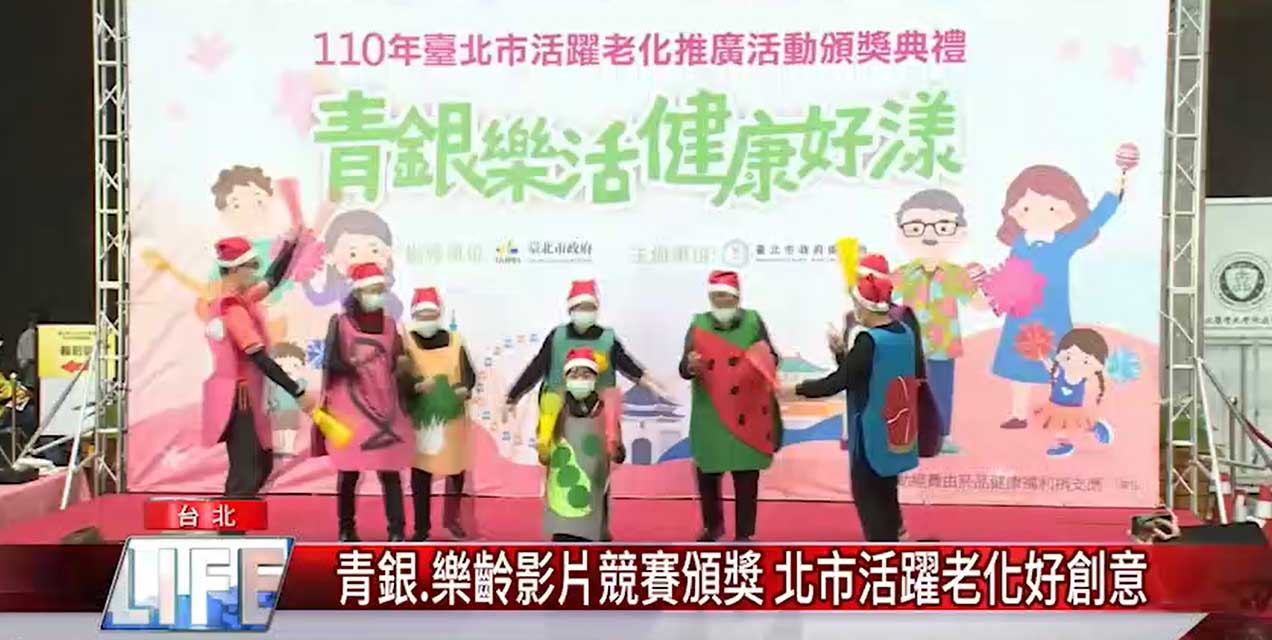另外為倡導世代互動,今年也舉辦「青銀時光作繪拍」創意徵選活動,由學生和家中長輩共同創作徵得56件作品,頒獎典禮揭曉「樂齡巨星秀」和「青銀時光作繪拍」得獎名單,內容貼近生活且發人省思,同時邀請95歲陳珠女士暢談長壽秘訣。