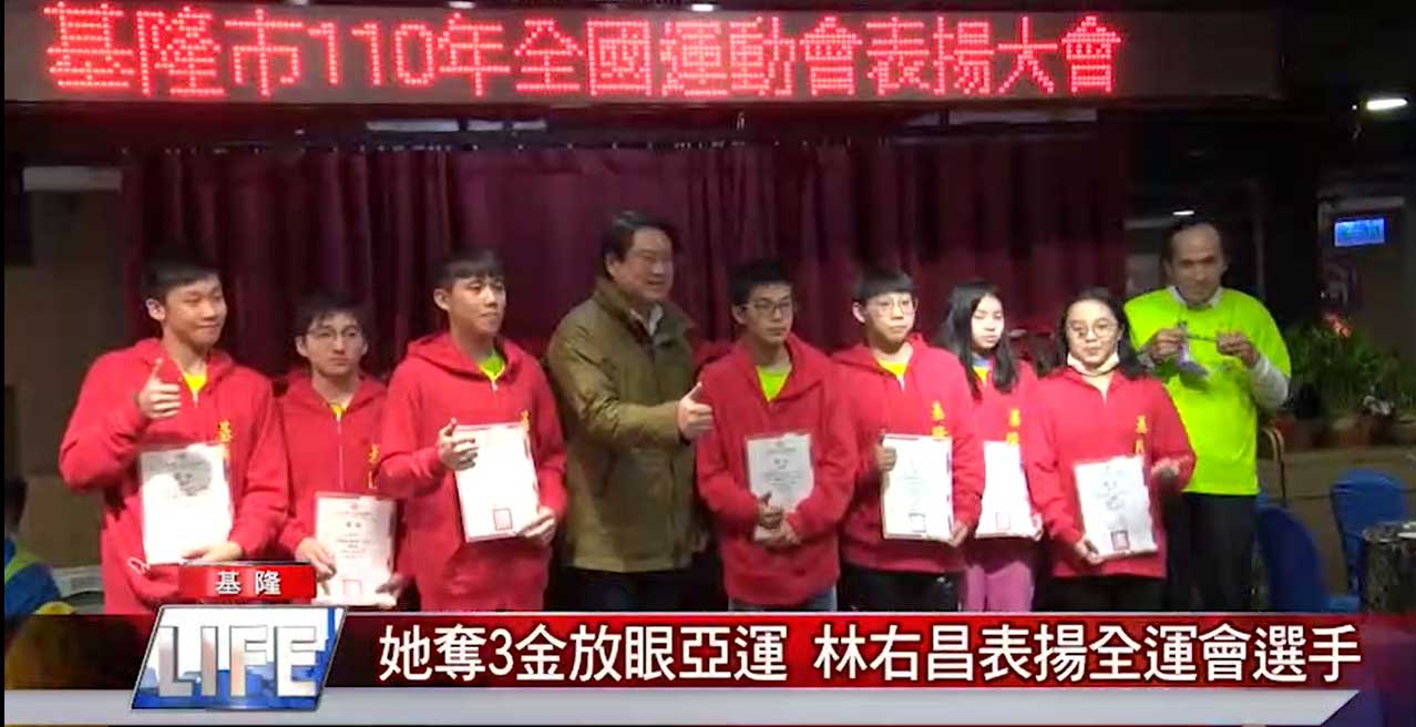 基隆運動小將們,於全運會游泳項目上締造史上最佳紀錄,獲得3金2銅牌佳績,基隆市舉辦優秀選手及績優教練表揚大會。