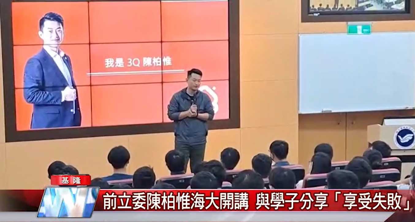 陳柏惟與海大學子分享他的人生經歷,並與文化大學、銘傳大學同步直播。一開始陳柏惟就與現場同學互動討論什麼是意識形態讓同學動腦思考,陳柏惟笑著說今天的主題是享受失敗,人生所有東西都是累積出來的,重要的是過程不是結果,不要只追求輸贏。