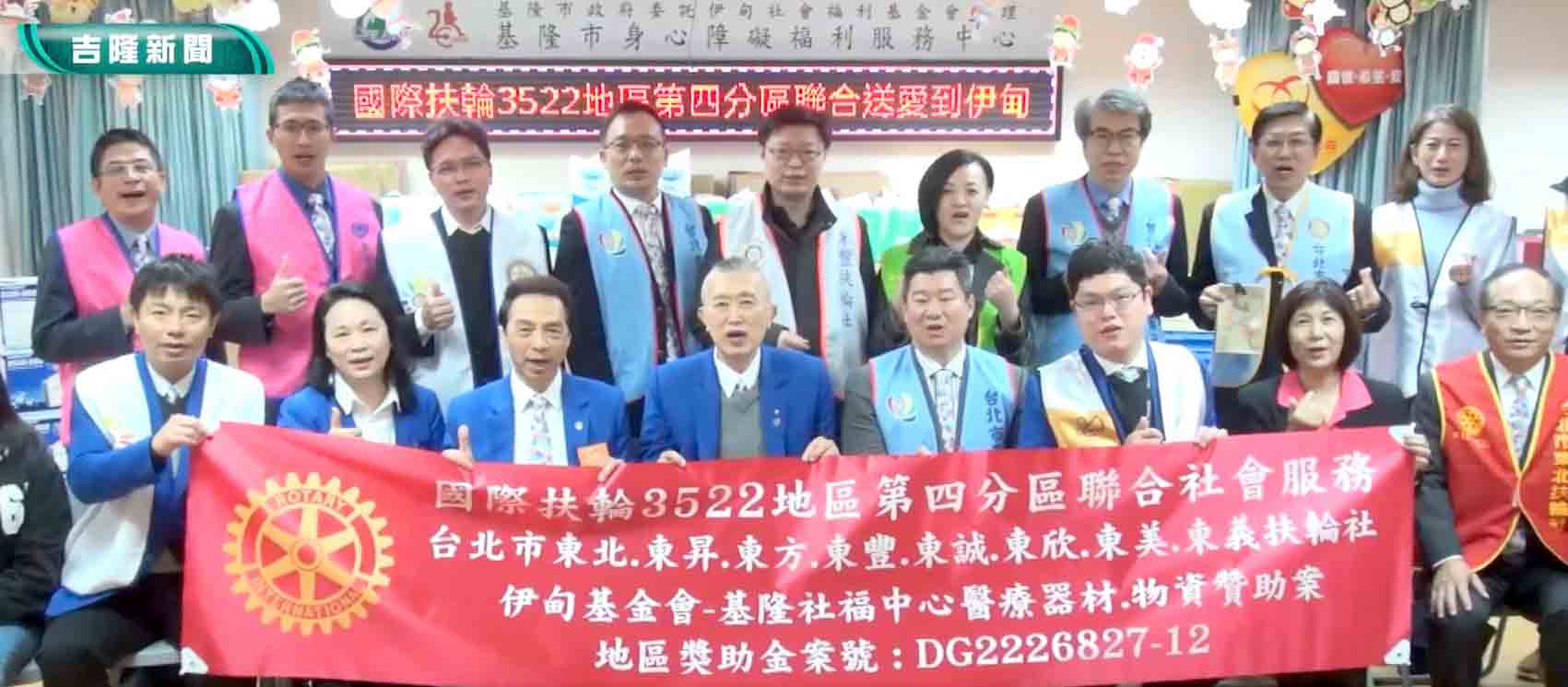 國際扶輪3522地區第四分區台北市東欣扶輪社發起”扶輪有愛,獨一無二”,聯合其他包括台北市東北、東昇、東方、東豐、東誠、東美及東義等總共八個扶輪社,捐贈總價值45萬元的氧氣製造機、塑鋼單一劑量車、移位滑板、轉盤、電動拍痰墊、抽痰機、噴霧氧氣機、血糖機以及成人尿布等各項物資,給基隆市政府社會處委託伊甸經營管理的身心障礙福利服務中心,協助中心汰換老舊設備、補充各樣耗材,幫助中心的住民和學員。