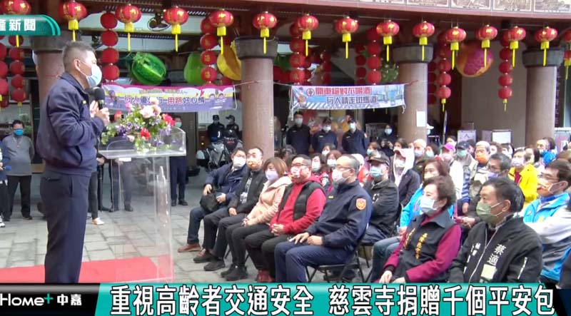 有鑑於交通事故中年長者發生的比例較高,基隆市警察局第四分局與慈雲寺特別舉辦守護高齡者交通安全活動。慈雲寺贊助1000份”平安包”送給長者,並請來藝人許效舜及白白,用逗趣幽默方式宣導長者交通安全要注意哪些危險狀況,並示範平安包用法,逗得台下長輩笑呵呵。