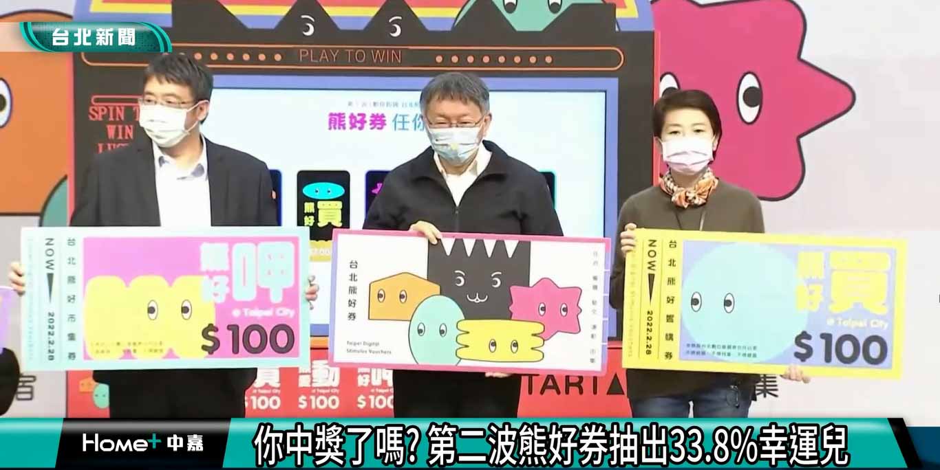 台北市長柯文哲抽出6號、副市長黃珊珊抽出3號、秘書長陳志銘和熊讚也抽出號碼,作為抽出第二波熊好券的數據,中獎民眾當日下午兩點前就會收到票券,可在台北市境內各熊好店家消費。