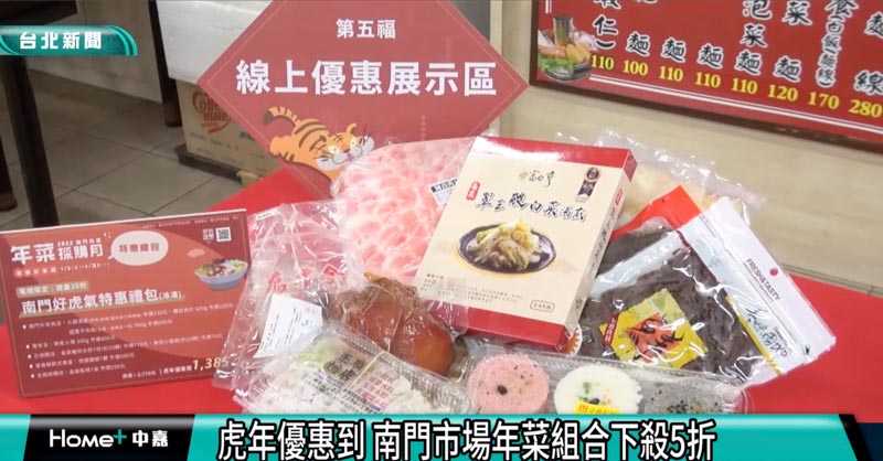 台北南門市場年菜採購月開跑,搭上網購風潮,線上線下祭出多樣折扣,最低下殺五折,各名店也推出年節優惠或是應景商品,像是虎年包子、開運年菜,歡迎民眾來採購。