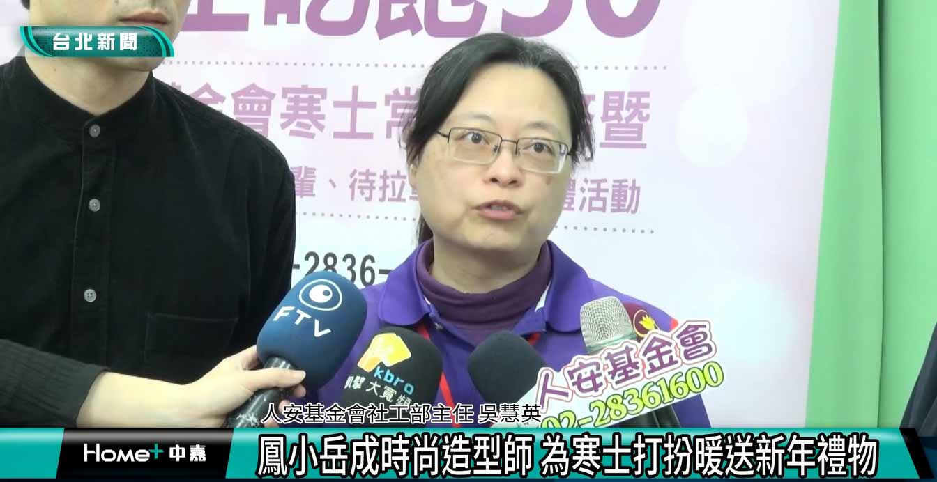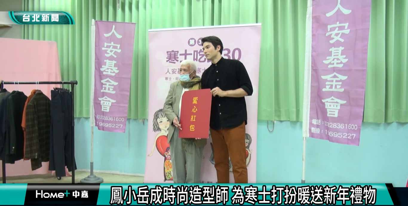(中嘉新聞/記者 翁于珺/台北採訪報導/藝點新聞ainews編輯整理)藝人鳳小岳化身時尚大師,幫寒士搭配服裝,才一會兒就讓寒士變成復古紳士風格。長期關懷弱勢的鳳小岳,受人安基金會邀請,為窮苦人送上最溫暖的關心,並將自己的圍巾也捐出來。