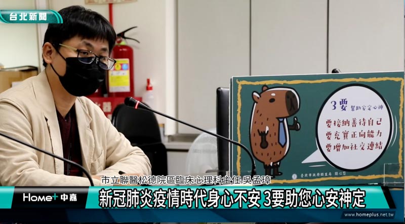 新冠疫情2019年底爆發,社會在疫情衝擊下充斥著惶惶不安的氣氛,根據美國疾病管制暨預防中心統計,逾4成的民眾在疫情期間出現心理或行為健康問題,臺北市政府衛生局呼籲市民可以透過一些技巧來使自己心安神定,重歸生活步調。