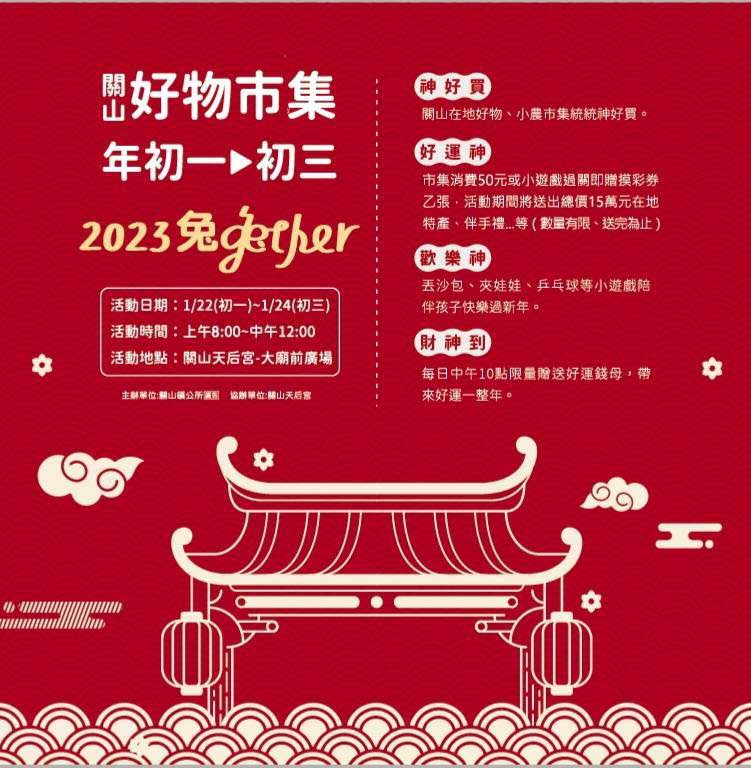 景點部分,台東森林公園春節期間正常開園,除夕收費至中午12點半;富山漁業資源保育區春節期間正常開園(8:00至18:00);東管處阿美族民俗中心1/23至1/29每天3場展演,現場有創意美食攤區、手工藝品區、手作DIY、戶外體驗活動及lima文化套票行程等開放民眾線上預約;成功海洋環境教室除夕休館,1/20、1/22至1/29正常營業;多良火車站全年無休照常營業。