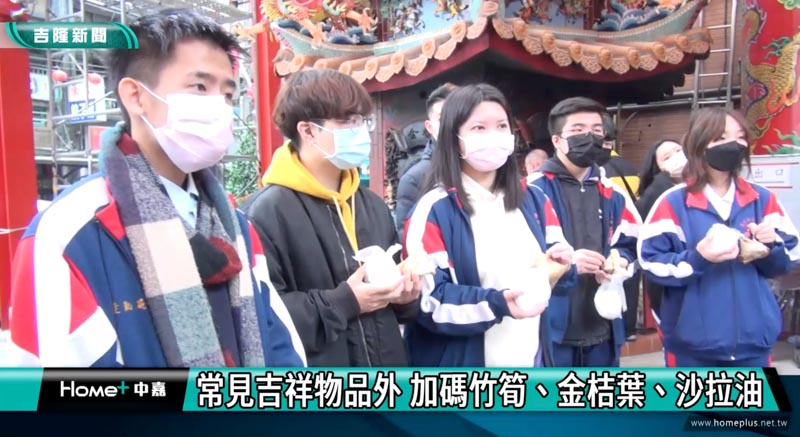 頂著寒冷天氣,一群基隆商工學生在七堵慶濟宮廟埕前,拿著暖呼呼、經過慶濟宮媽祖以及文昌帝君加持過的包子和粽子,考生們就信心大增!