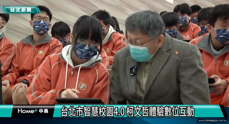 柯文哲於日前出席台北市110學年度智慧校園4.0成果展,體驗以學生全日學習及生活為基礎的數位校園設計,包含以數位學生證結合體溫感測以及到離校刷卡、智慧點餐、健康管理、智慧圖書館等多項e化服務,另還有台北酷課雲4.0的課間及課後師生互動成果。