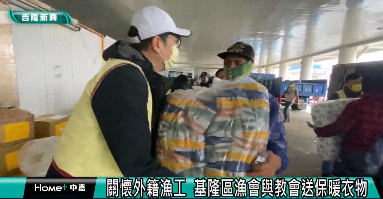 基隆漁會總幹事陳文欽說,「教會跟漁會合作,我們每年這個時候,都會發給他們冬天禦寒用的東西,很多棉被襪子內衣內褲都有,讓他們也跟我們一樣過個好年。」