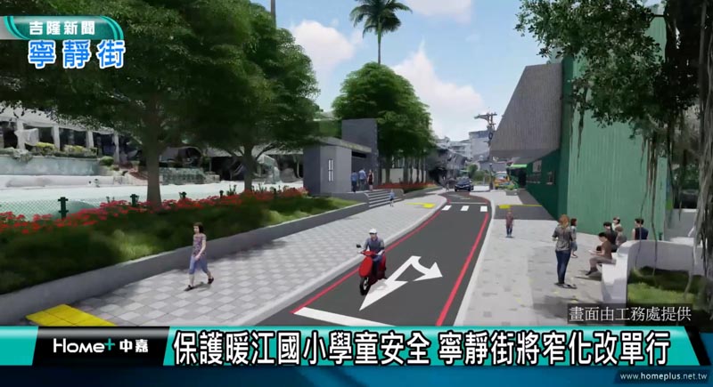 持續改善基隆市道路環境,基隆市政府工務處方面宣布完成過港路及寧靜街人本示範道路2.0規劃,其中暖江國小前的寧靜街將首次採線性彎曲窄化路寬的降速設計,將原有雙向車道縮減改為單行道,多出的空間全部作為人行使用。