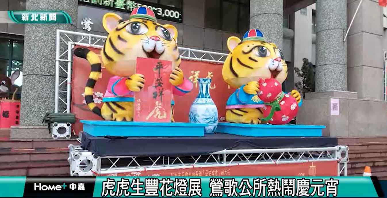 鶯歌區公所在大門廣場擺放虎年主題花燈及生肖主題燈籠,供民眾觀賞,除了主題花燈之外,還有來自各個社區發展協會彩繪的花燈,花燈圍遶在公所週邊,顯的喜氣洋洋,年味十足。