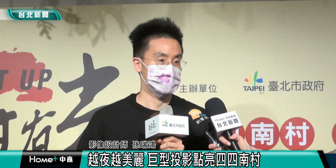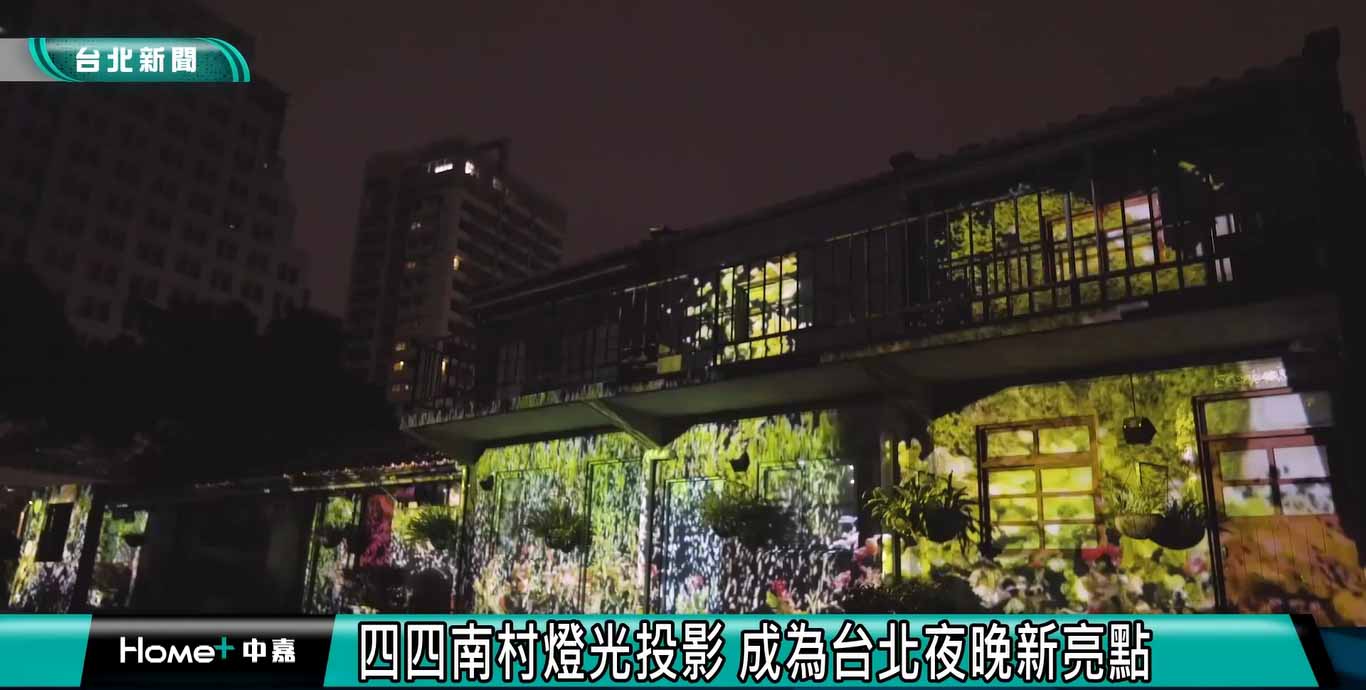絢麗的燈光藝術投影在台北四四南村的歷史牆面上,述說著四四南村的前世今生,首檔「LIGHT UP南村有光」燈光藝術展演由旅美影像設計師孫瑞鴻親自操刀,讓入夜的四四南村充滿了驚喜與想像。