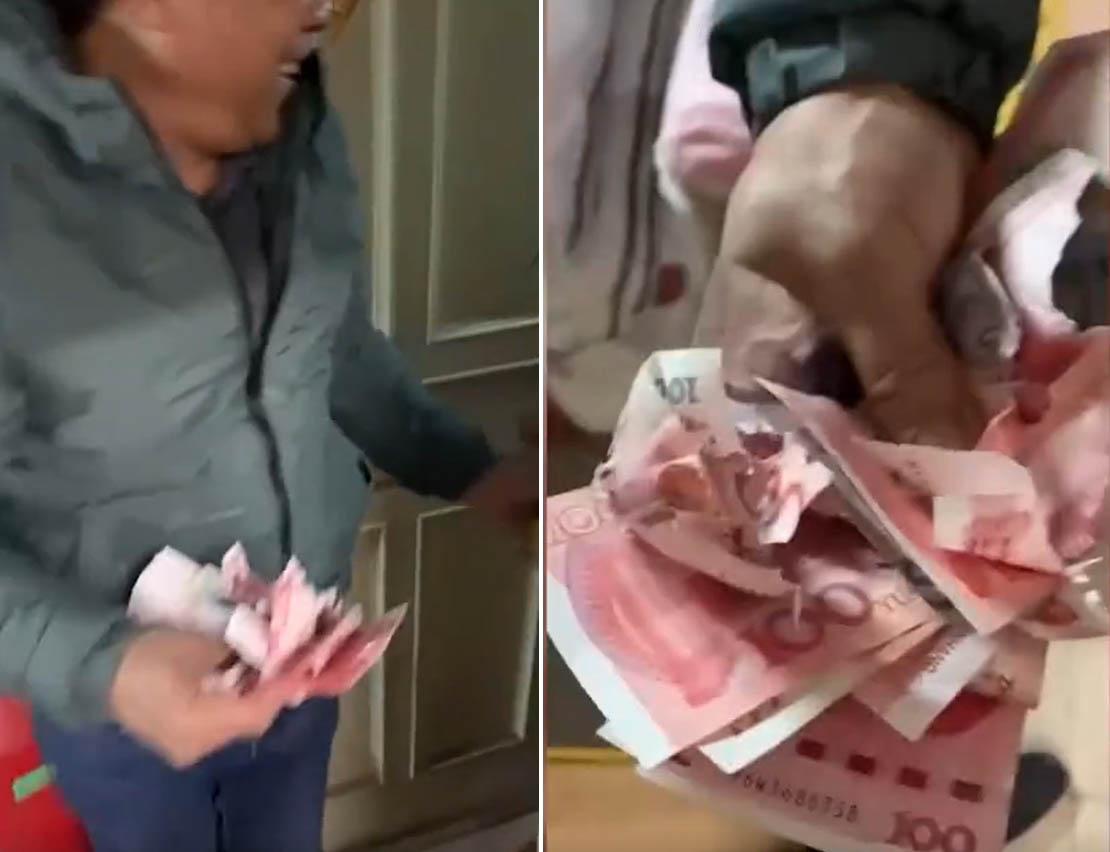 ▲遺失的錢失而復得,讓老闆哭笑不得。(圖/微博)
