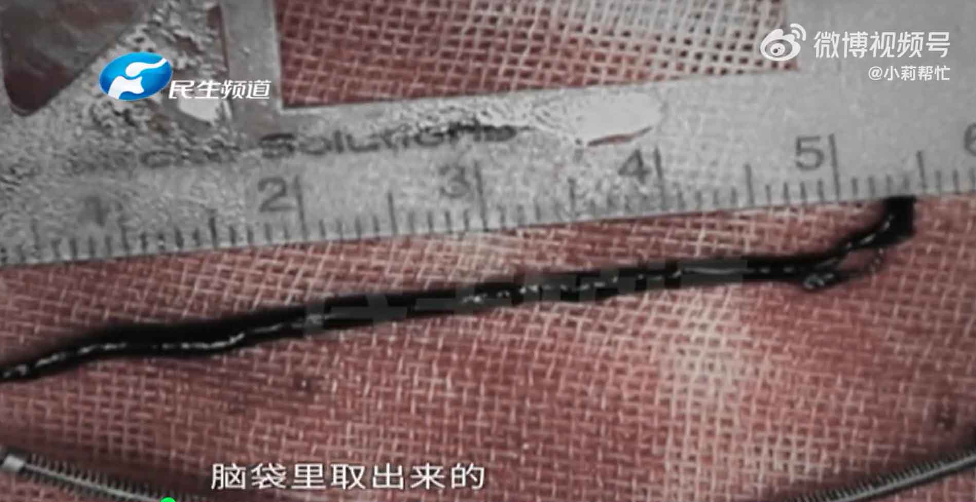 ▲醫生從女大生腦中取出的血栓長達5.5公分。(圖/微博)