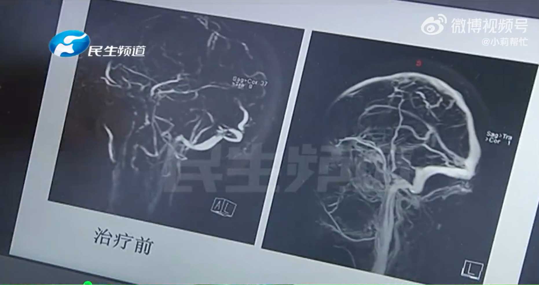 神經內科醫師替女大生檢查,發現她竟是「顱內靜脈竇血栓」,並且從她的腦內取出一條長達5.5公分的血栓!醫師說:「像蚯蚓一樣。」主治醫生徐志強表示,顱內靜脈竇血栓的病因可分為6種,女大生的症狀是由於調經藥所引起的,就診時拍下的片子(圖左)明顯看到上部無法顯影,「有一根很長的血栓,當時在手術當中取出來大概是5.5厘米(公分)。」