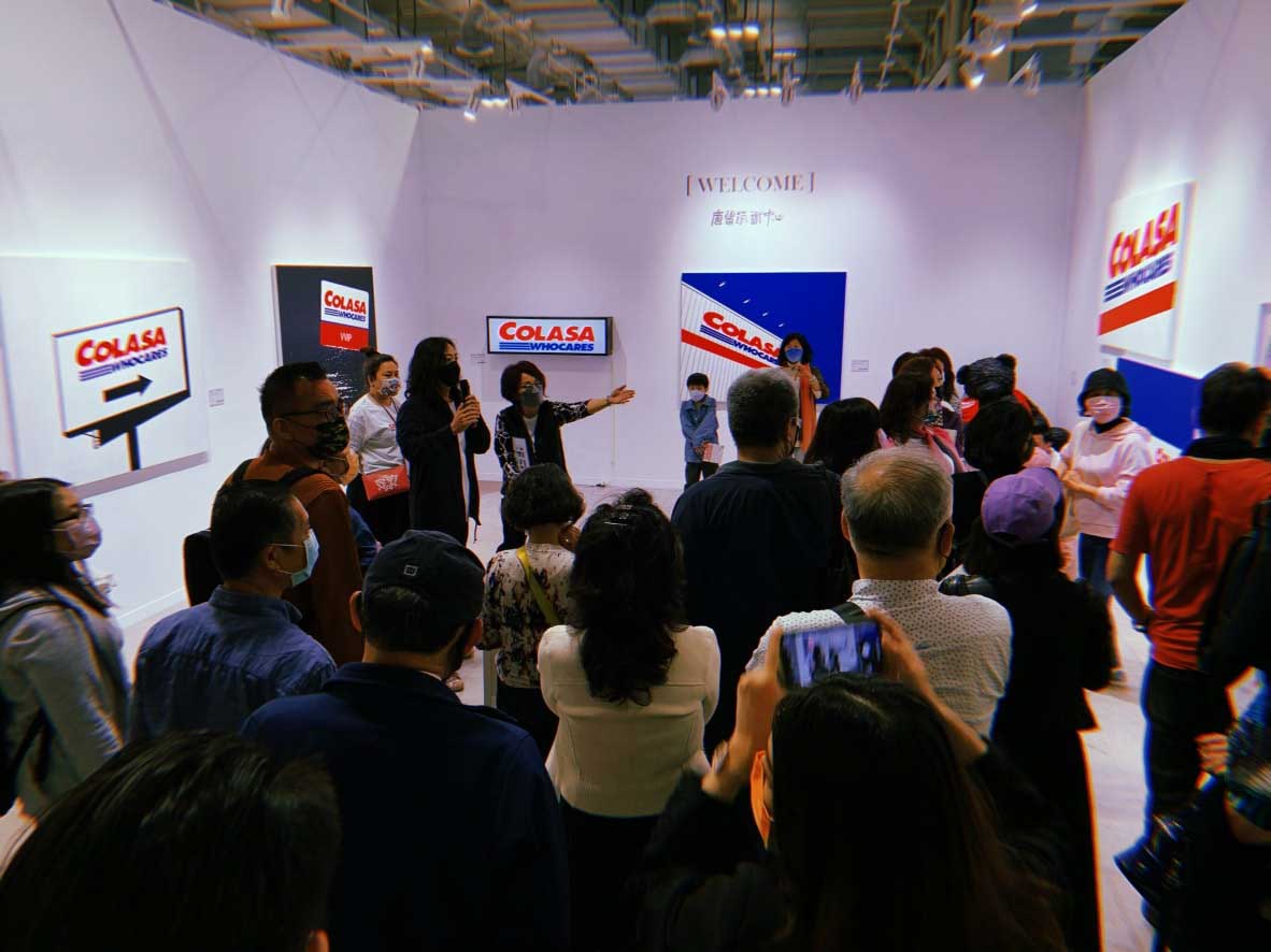 COLASA表示,這次的《歡迎光臨》快閃個展的靈感來自美式賣場,因為名稱和自己的名字看起來有點像,過去Colasa在街頭塗鴨時,常簽上自己的名字,所以這次才會把名字放進創作,「我把wholesale改成whocares,就是因為街頭塗鴨喜歡在街上簽名字,可是對於一般大眾而言,他們比較不會去care這種事情,所以我故意用這種比較幽默的方式,去想說誰會注意到這件事情。」