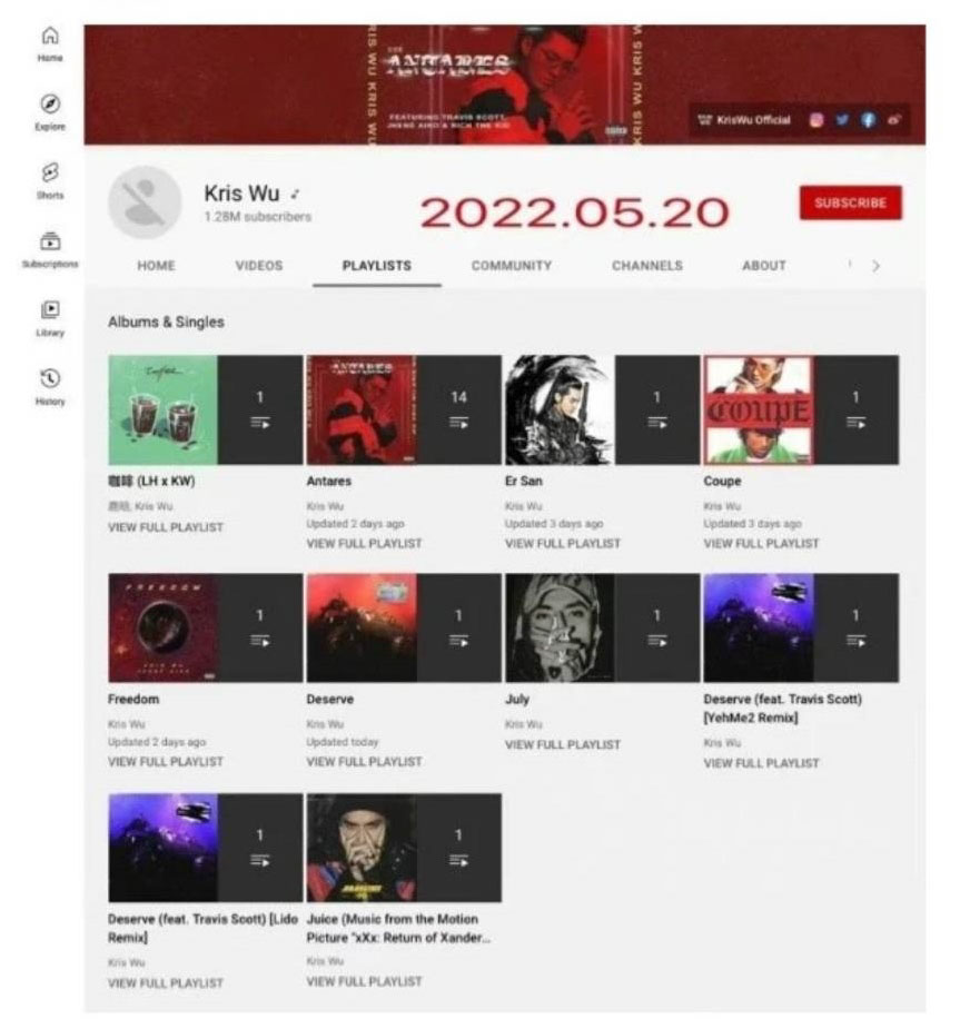 雖然吳亦凡名聲全毀、微博帳號被封,但他的IG、推特和YouTube帳號都還在;日前他的推特突然更新了一張封面照,而且還清楚看出是藍天白雲,讓許多網友認為他是在昭告天下已重獲自由。不過,他的推特帳和臉書帳號今天也已經關閉了。還有網友發現吳亦凡的YouTube頻道這幾天陸續更新,並刪除了3支影片,認為有可能是他回歸眾人視線的第一步。