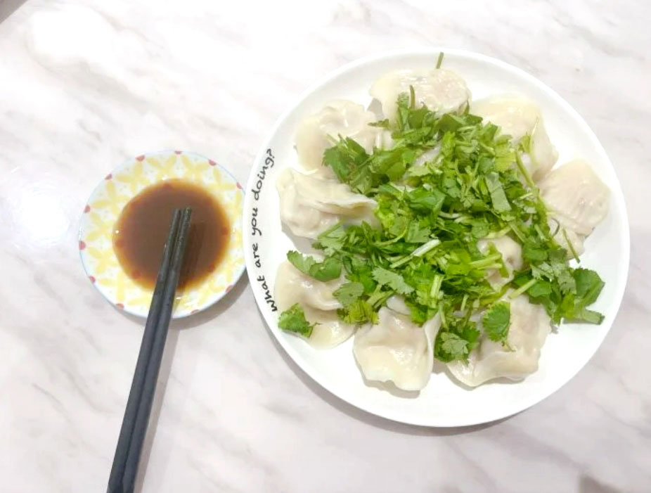 他並曬出媽媽包的水餃,端上桌還要撒一大把香菜,「還是自家老媽包的最好吃 皮Q內餡又多,一口咬下超級滿足還會噴汁,根本包皮王」、「上面灑滿一大把香菜,人生吃到這盤已滿足」。