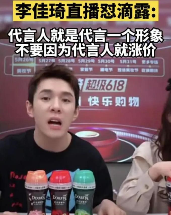 李佳琦還暗示「滴露」是因為花了大錢請肖戰代言,連帶讓商品價格也跟著漲價。他說:「所有女生我說句心裡話,可能會得罪很多人。我覺得代言人只是幫它(品牌)代言一個形象,不要因為代言人什麼什麼就給我漲價,賊煩!好不好?真的賊煩!」