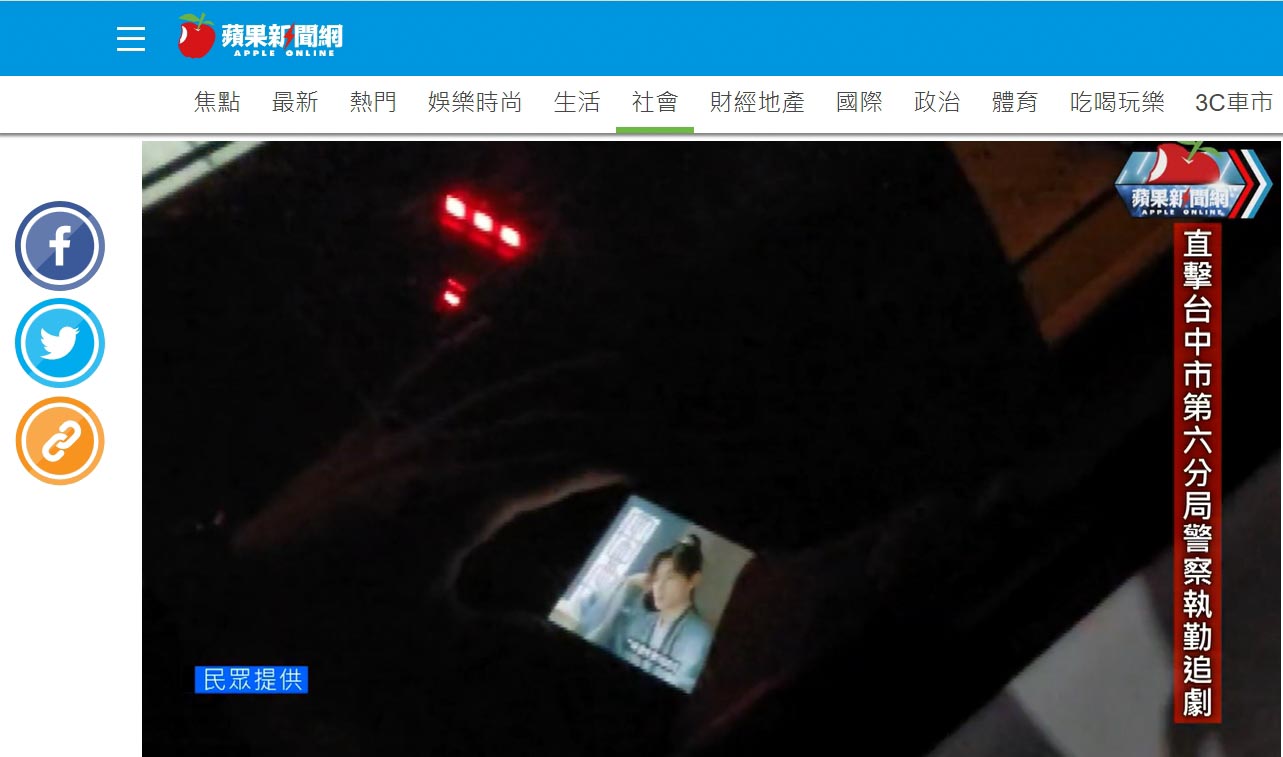 ▲台中警方執勤追劇,被民眾拍下。(圖/翻攝蘋果新聞網)