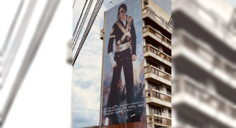 台中市豐原區一棟7層樓的建築,日前掛上了超巨大的已故巨星麥可傑克森(Michael Jackson)海報。有網友拍下照片PO網分享,好奇究竟是誰貼的海報、目的又是為了什麼;照片曝光後,也吸引一票網友表示想要去朝聖。