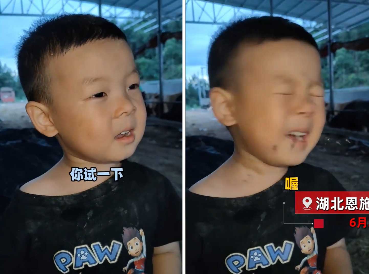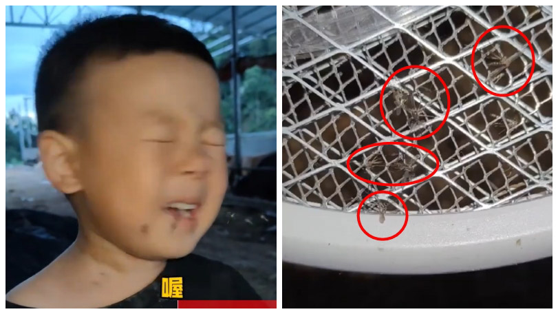 ▲3歲男童一說「喔」字,就吸引一堆蚊子飛過來。(圖/微博)